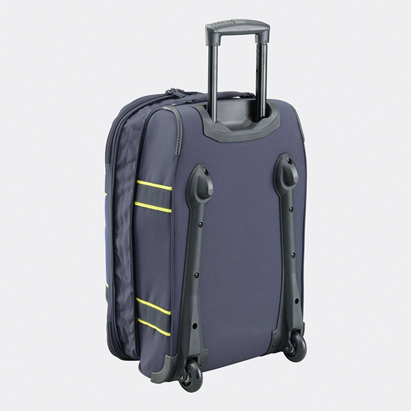 Made from 100% polyester, it is lightweight yet robust, ideal for handling frequent travel. Skate wheels, multiple grab handles, and a telescoping pull handle ensure effortless mobility, while the reinforced back panel skids provide added protection. Inside, compression straps keep your gear secure, and low-profile external pockets offer quick access to essentials.